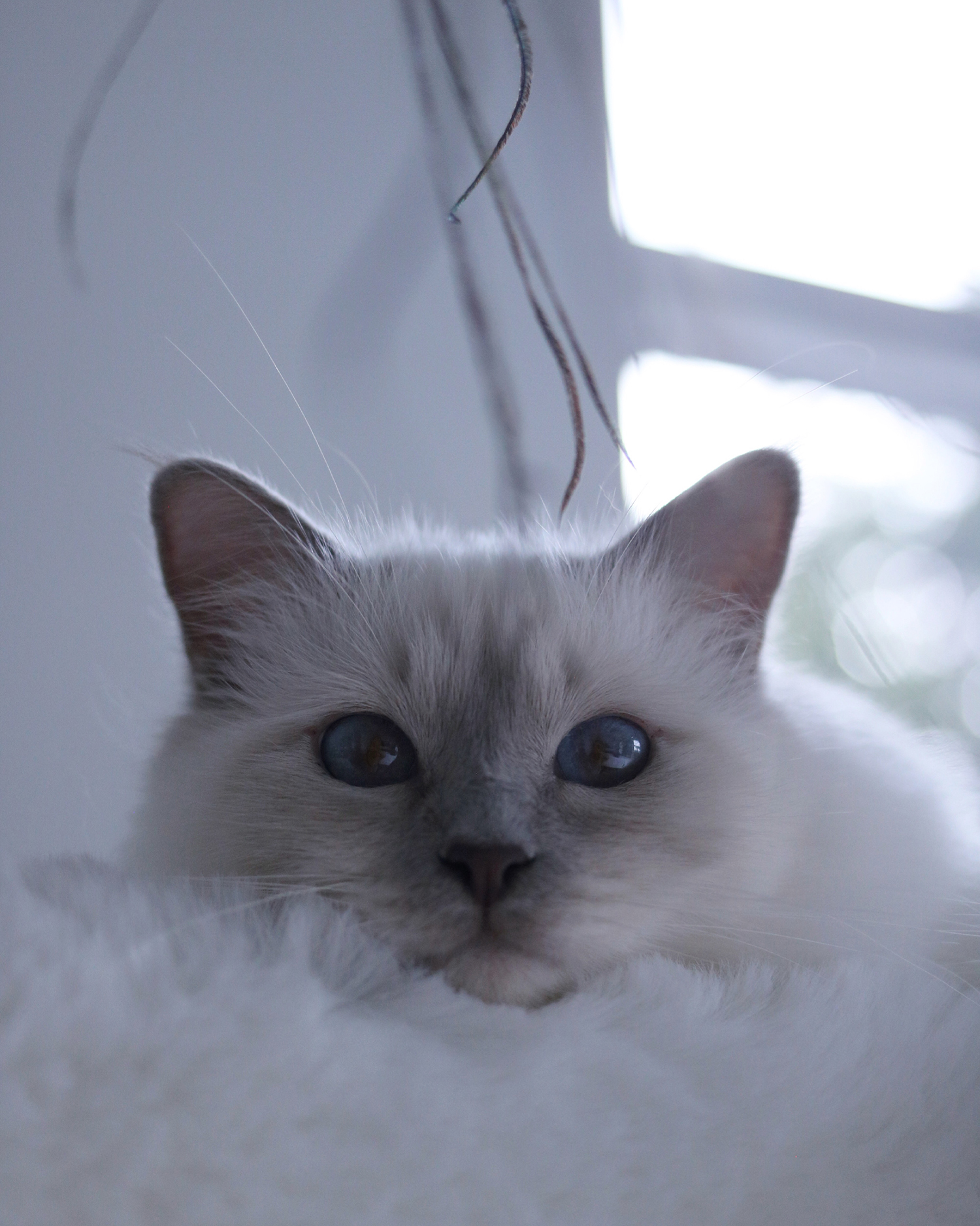 Lillys kompletter Name lautet Fiona Lilly Rose von Kaltenthal. Sie ist ein kleines Energiebündel und hat mindestens ein Dutzend Spitznamen. Für Lilly gibt es nichts Schöneres als den ganzen Tag zu spielen. Bei zu wenig Beachtung bringt sie ihr Spielzeug und legt es auf unsere Füße resp. Schuhe und das beschränkt sich nicht nur auf eine Angel, sie bringt alles aus der Spielzeugkiste, bis wir auf sie reagieren. Ihre elegante Art, die sie an den Tag legt, verliert sie nur, wenn man sie hochhebt. Sie „hängt“ durch wie eine Bogenlampe, sie verfügt über keinerlei Körperspannung. Unsere knochenlose Zuckerpuppe versucht sich dennoch mit sportlicher Betätigung, vor allem ihre Abstiege vom Kratzbaum sind jedesmal spektakulär. Eines ihrer weiteren Kunststücke ist, dass sie sich, sobald man sie anspricht, sich auf dem Boden fallen lässt, wir haben sie nicht dahingehend konditioniert, den Tick hatte sie schon als Kitten. Beim Putzen zeigt sie gern ihr akrobatisches Talent, so dass wir auf dem cremefarbenen Schaffell nicht wissen welcher Körperteil vorn ist.